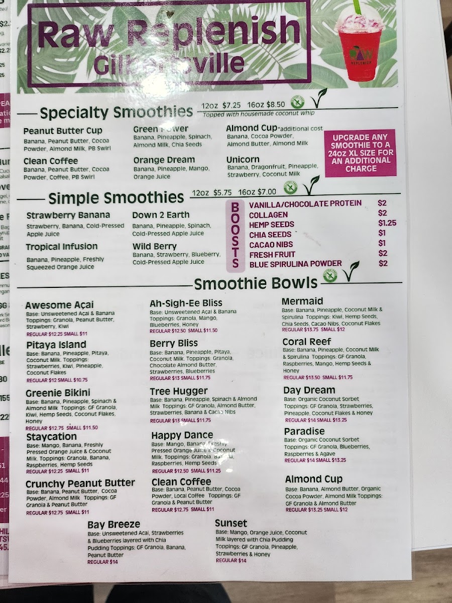 So whether you're a local or just passing through, stop by Raw Replenish for great food and a refreshing atmosphere — you won’t be disappointed!
